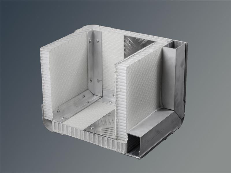 El panel de nido de abeja de fibra de vidrio está hecho de núcleo de nido de abeja de PP y piel de fibra de vidrio, el núcleo de nido de abeja de PP puede absorber la energía cuando se golpea, mientras que la piel de fibra de vidrio da un acabado rígido.